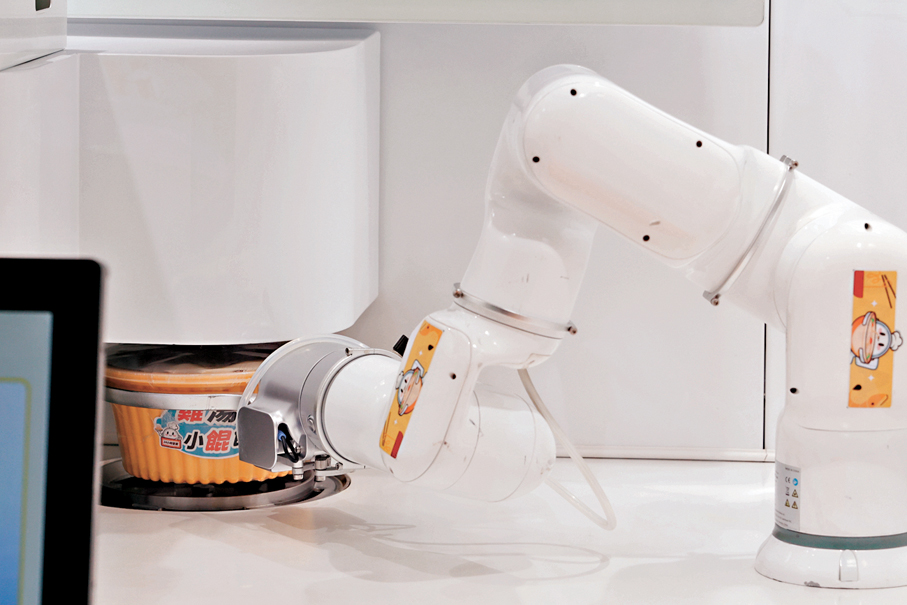 機器人實現從點餐、機械臂抓取、蒸氣加熱至自動打包的全流程無人化操作。 香港文匯報記者黃艾力 攝